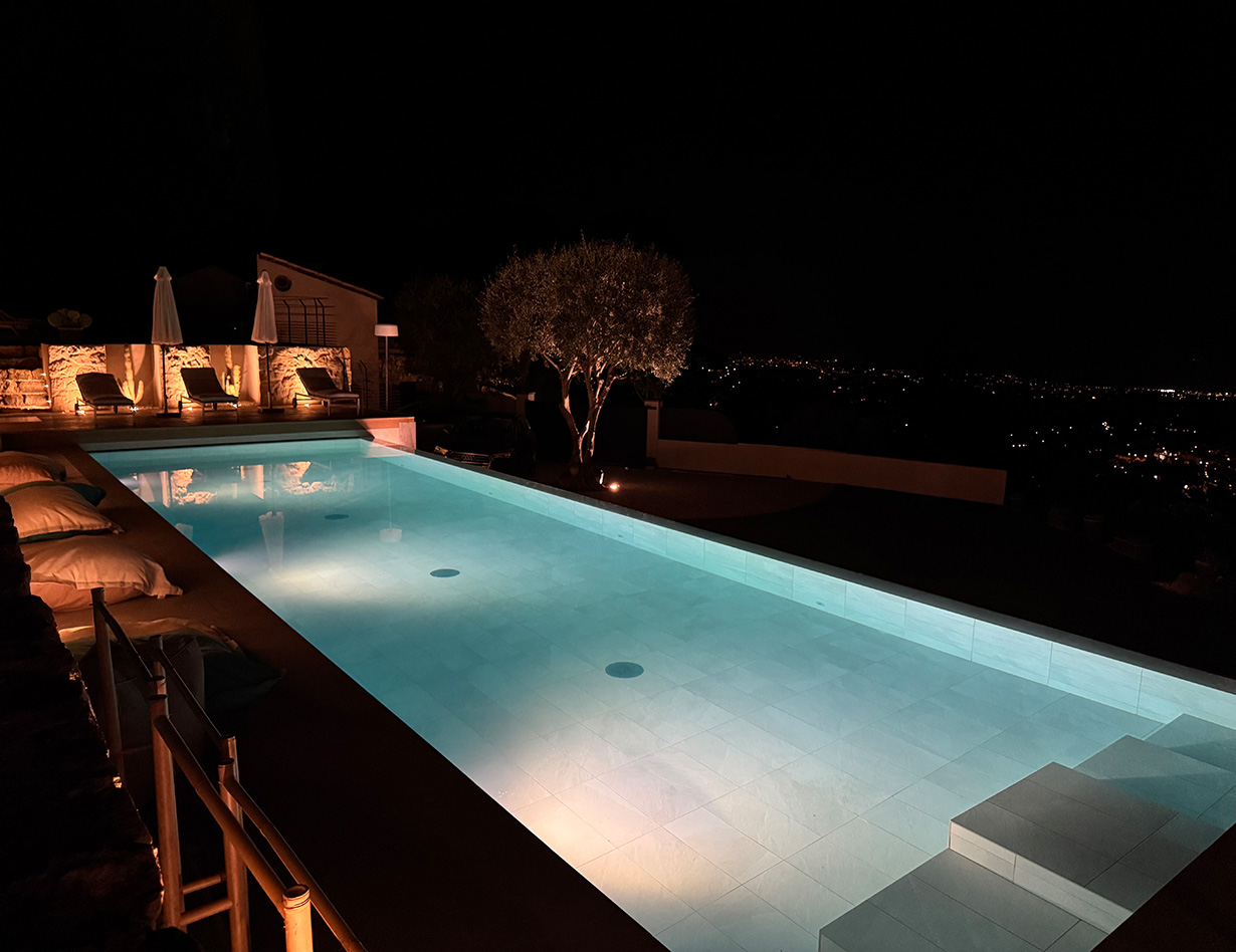 Fantastic modern stone house in the hill of the provencal village VENCE, close to Nice and to Antibes/Cannes with one of the most beautiful views from the Cote d Azur! This luxury and very nice decorated villa offers all, what you need in your comfortable and relaxing holidays: 5-6 beautiful bedrooms (two master bedrooms!), 4-5 nice bathrooms, outdoor shower with hot water, lovely living room with chimney, extra TV-Room, luxury kitchen, big table, very well equipped. Outside a big table for several guests in front of the kitchen, BBQ and summer kitchen. The very big swimming pool of 15 m can be heated. Nice garden furniture and lots of sun shade. The garden is very well maintained and with lots of medeterreans plants, olive trees, flowers and gras to play. There is also a little herbs- and vegetable garden. Parking is comfortable for several cars. Electric gate. Perfect for 1-2 families. (Mainhouse: sleep 9 people and in the garden-house/cabanon there are is one more bedroom with two more beds and a shower = maximum 10-13 people). House service possible.