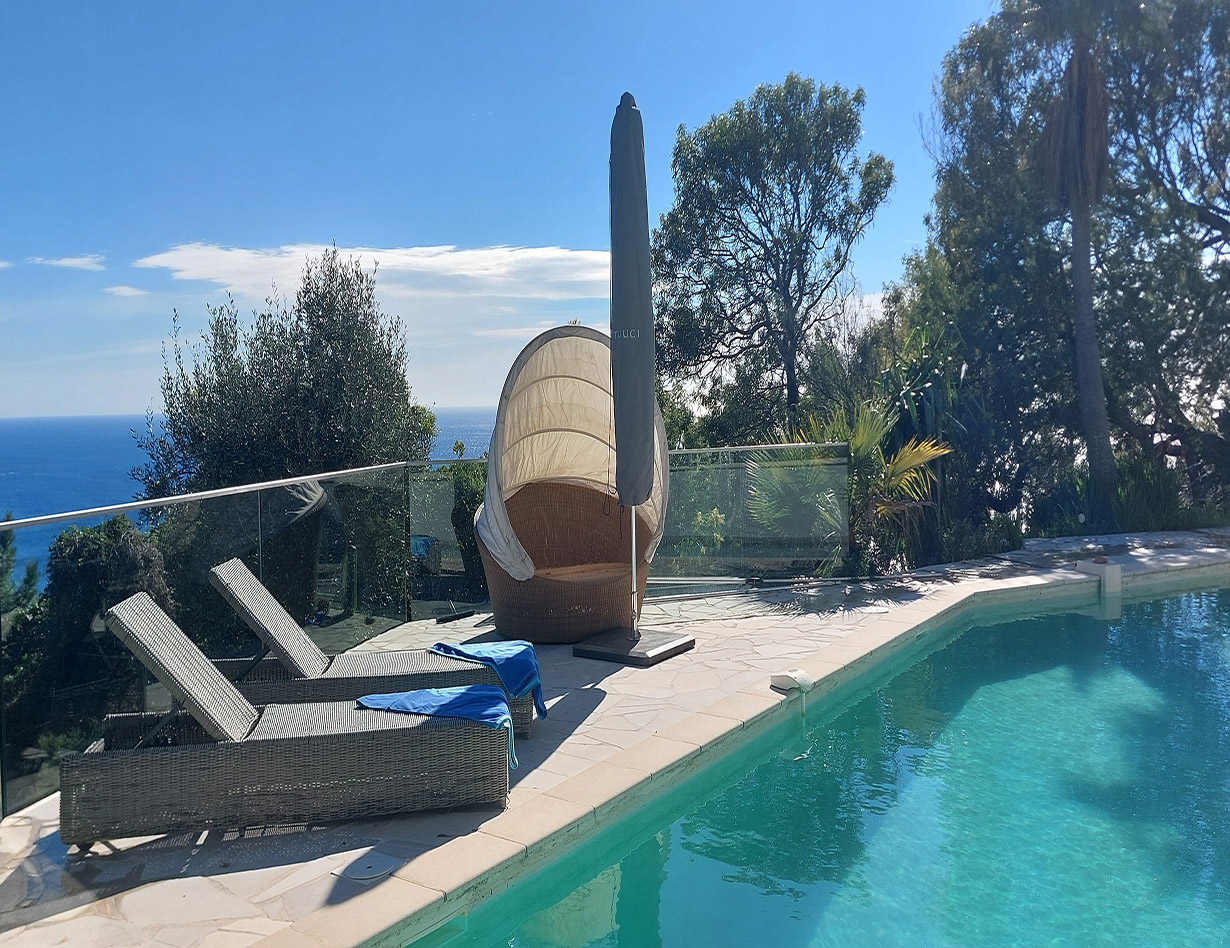 Besonderes Highlight bei diesem komfortablen Appartement in Théoule-sur-Mer ist der 12 x 4 Meter lange Pool mit Blick aufs Mittelmeer – ergänzt durch hochwertige Liegen und Loungemöbel für entspannte Stunden unter der Sonne der Côte d’Azur. Der Pool ist mit dem Eigentümer zu teilen, der jedoch sehr dezent ist und Sie nicht stören wird.