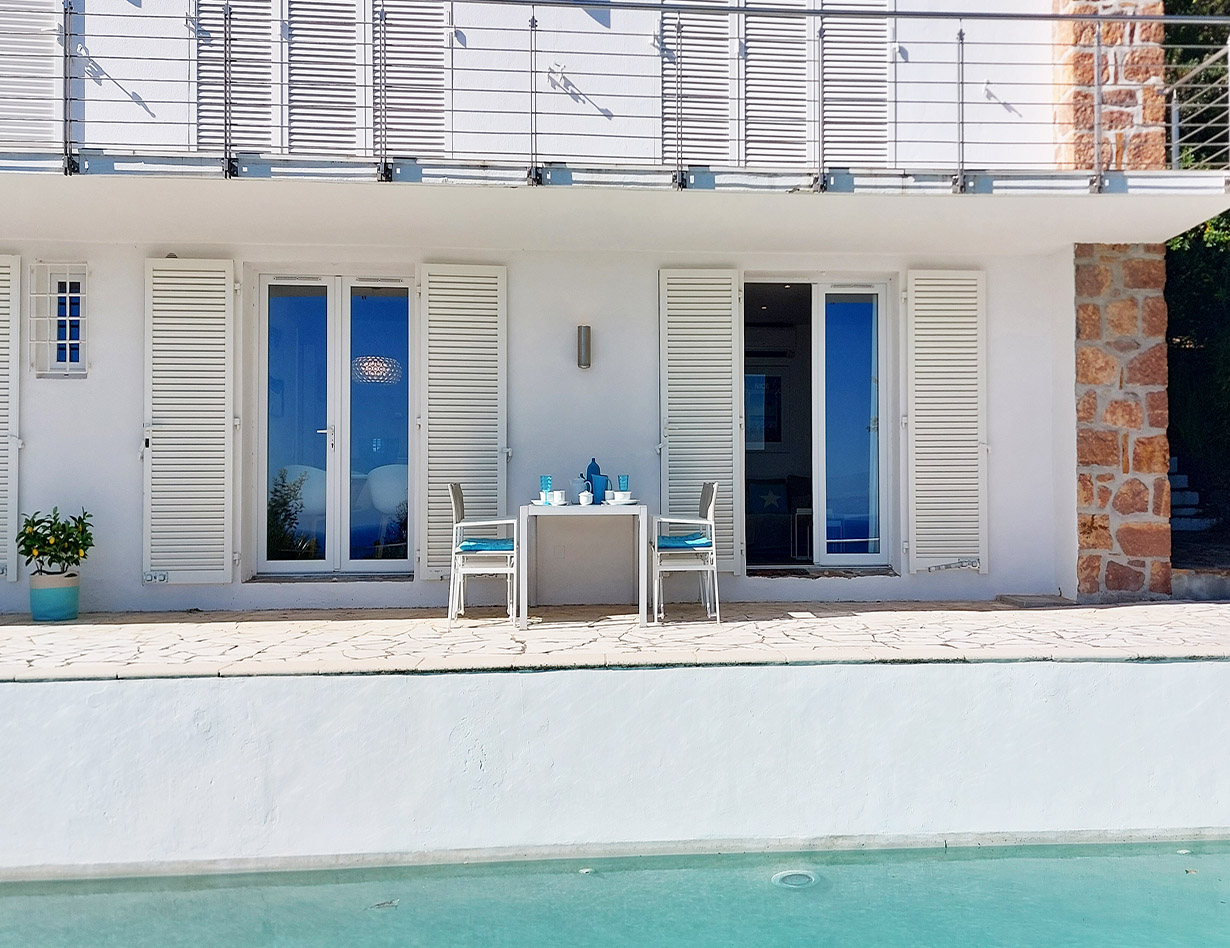 In traumhafter Villen-Hanglage von Le Trayas, einem ruhigen Ortsteil von Théoule-sur-Mer, liegt die schöne Villa Blanche in einer privaten, geschlossenen Domäne. Das Haus ist aufgeteilt in 2 sep Etagen. Auf der oberen wohnt der Eigentümer. Auf der Poolebene liegt das Appartement mit einem separaten Eingang über eine Außentreppe.