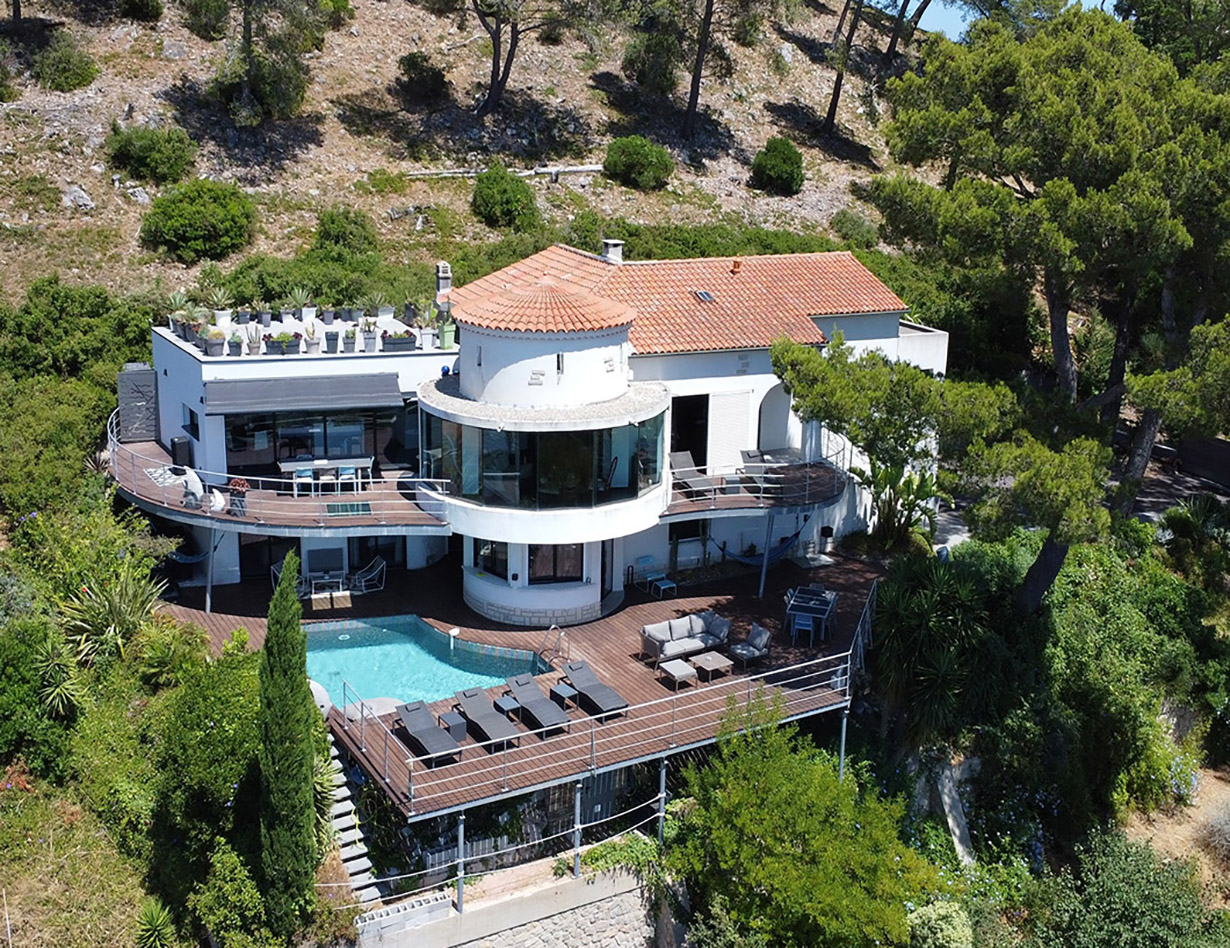 Tolle große Architekten-Villa mit einem Rundum-Meer- und Panoramablick, nah zum Meer und den tollen Sandstränden der Halbinsel Gien, bekannt für Kite Surfing – der Plage de l´Almanarre ist zu einem der schönste Strände gekührt worden. Ideal für alle die Wassersport lieben! Diese tolle Villa liegt in ganz ruhiger Wohnlage, eingebettet in die Natur mit herrlichen Pinien und schön angelegtem mediterranen Garten in Hanglage. Sehr große Terrasse mit Pool (kann beheizt werden in der Saison) und modernen Loungemöbeln, Schattenplätze, Außendusche mit Warmwasser UND ein sensationeller Meerblick! Seit diesem Jahr gibt es zudem einen außen SPA – auch beheizbar natürlich , besonders nett abends, wenn die Sonnen untergeht! Auf der Poolebene befindet sich: Ein separater Eingang um den unteren Bereich auch extern zu zu begehen. Insgesamt 4 schöne klimatisierte Schlafzimmer: 3 Schlafzimmer mit Doppelbetten und 1 Schlafzimmer mit 2 Einzelbetten (kann auch als Doppelbett vorbereitet werden), insgesamt 4 Bäder im Haus (eins mit Badewanne, eins mit großer begehbarer Dusche), 2 sep. WCs, zudem eine zweite Küche im EG, kleiner Eßtisch unten – praktisch, wenn man mal schnell etwas am Pool auch aus dem Kühlschrank holen möchte. Auf der oberen Ebene befindet sich ein weiteres sehr schönes Masterzimmer mit großem Doppelbett und ensuite Badezimmer – mit herrlichem Meerblick! Sehr schöner großer heller offener Wohn-Eßbereich mit wunderbaren Gemälden von Astruc und Boca, mit gemütlicher Wohnlandschaft und Leseecke – im Focus ein moderner Kamin. Die Fensterfront lässt sich zudem komplett öffnen zur Terrasse. Große sehr moderne sehr gut ausgestattete Küche. Für Kochfans ein Genuss! Vor der Küche befindet sich eine weitere große Terrasse mit großem Eßtisch, von der Sie auch wieder diesen wunderbaren Blick genießen können. Parkplätze für 3 Autos auf dem Grundstück. E-Auto Ladestation. Elektrisches Gate. Ein wunderschönes Licht durchflutetes Haus, ideal mit Freunden oder mit Familie mit nicht zu kleinen Kindern.