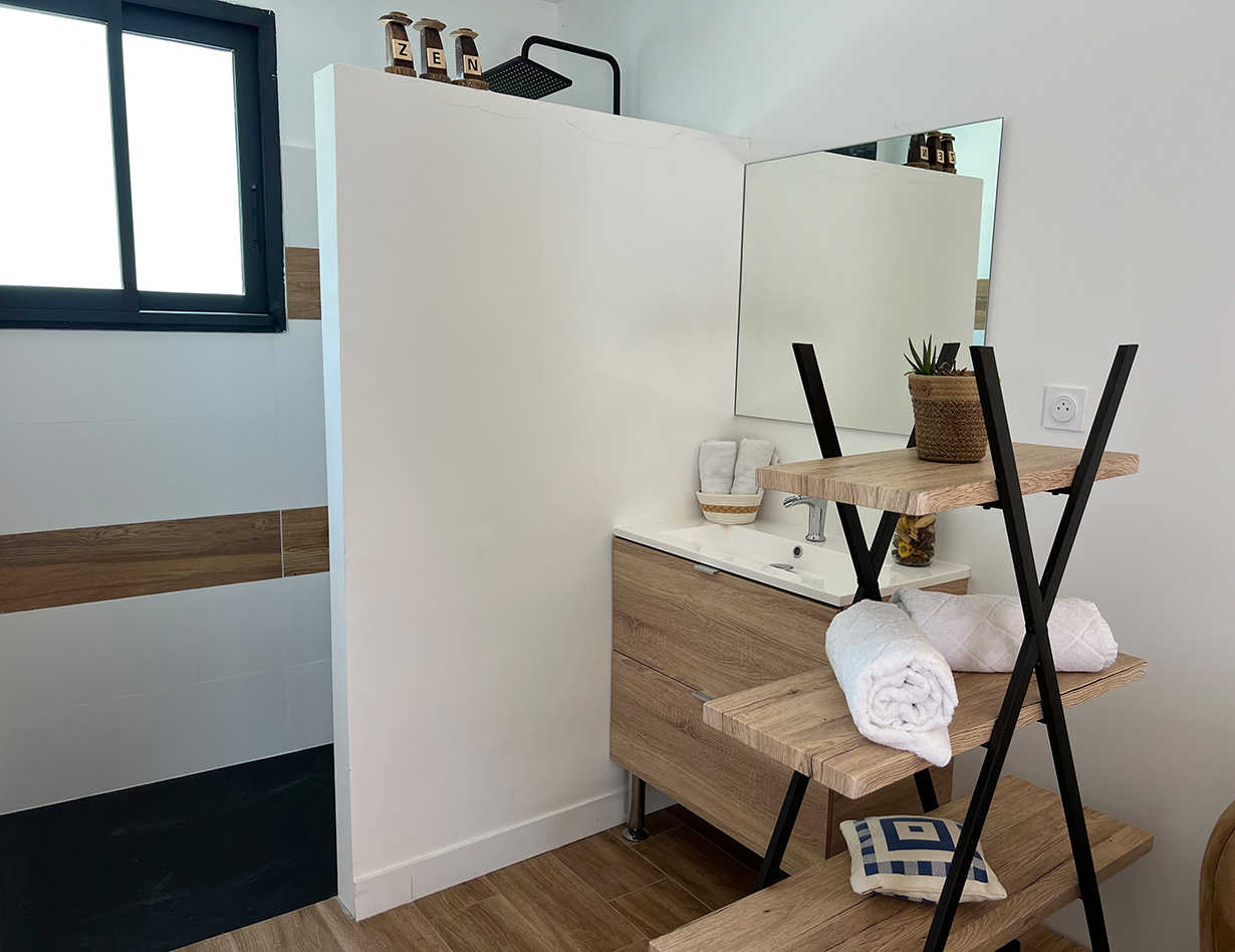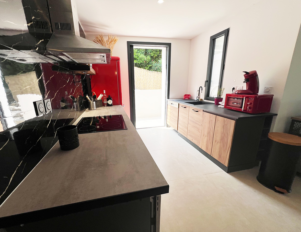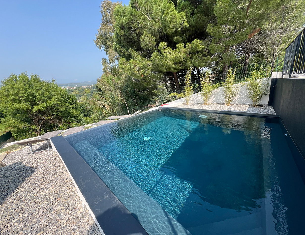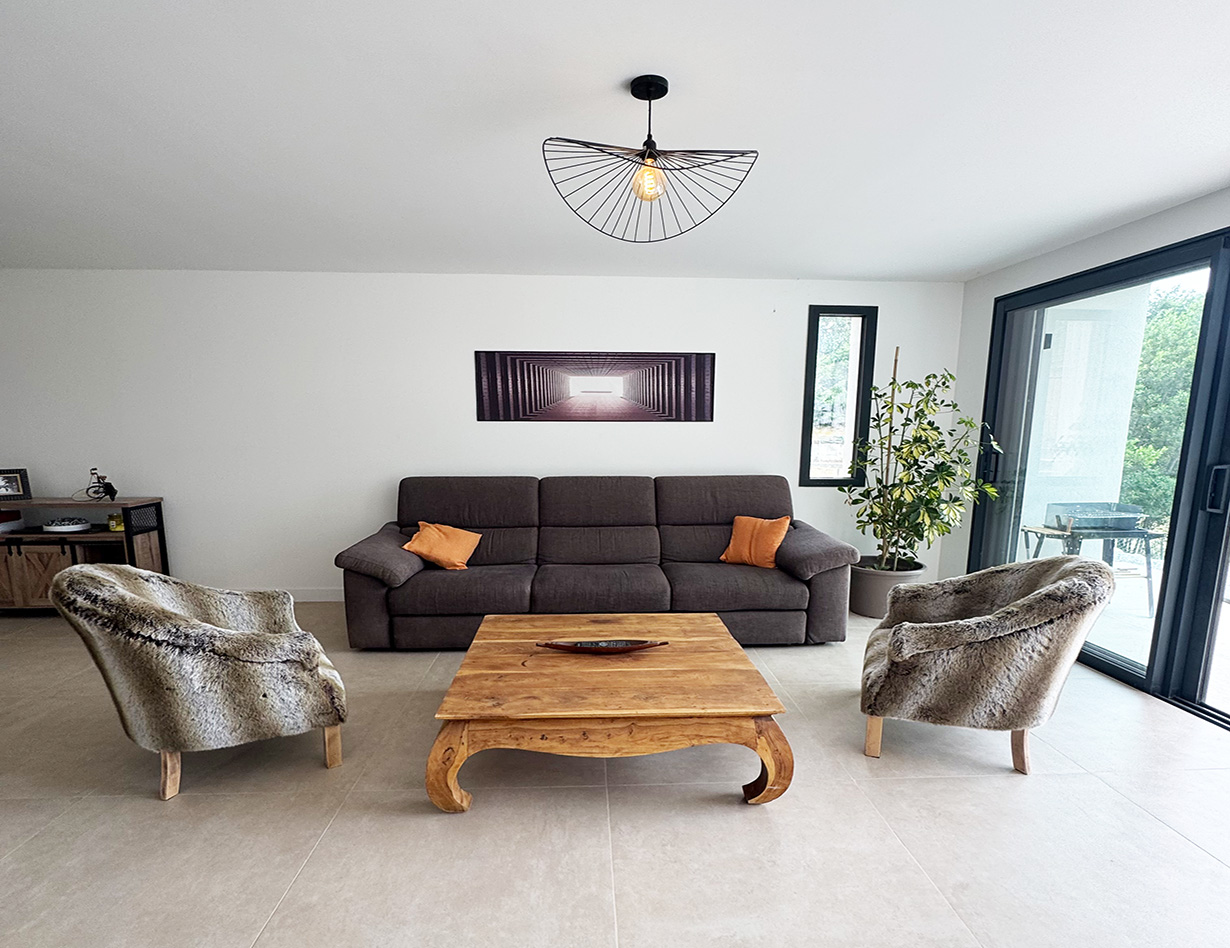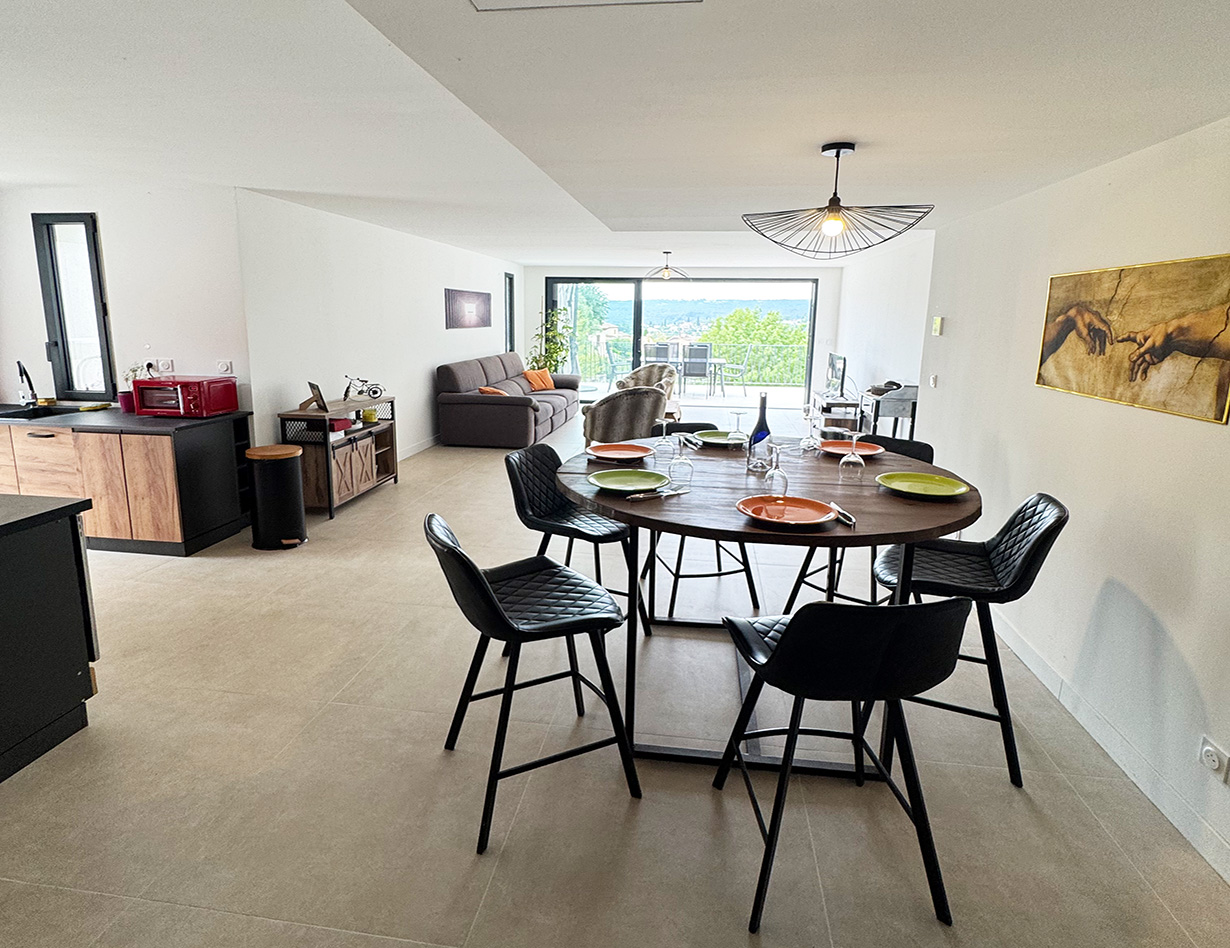 St Paul-de-Vence: Gerade ganz neu gebaute moderne Villa in ruhiger Lage mit 3 sehr schönen klimatisierten Schlafzimmern mit Doppelbetten und ensuite Bädern. Das schöne gepflegte Ferienhaus verfügt über einen offenen Wohn-Eßbereich mit Wohnküche und gemütlichen Sofas, TV. Vor der Wohnebene haben Sie eine schöne große Terrasse mit Blick in die Natur. Weitere Terrassen befinden sich vor der Küche und eine super große Terrasse mit tollem Blick vor dem Masterbedroom im OG. Im Garten befindet sich ein kleiner, aber sehr feiner moderner Pool mit komfortablen Sonnenliegen und Schirmen. Bouleplatz. Ab Sommer Tischtennisplatte im Garten. Das Haus ist ideal mit Erwachsenen oder mit Teenagern, drei Paare haben auch drei gleichwertige schöne Zimmer. Voll klimatisiert. Kleine Kinder sind nicht gewünscht, da das Grundstück und auch innen die Treppe nicht geeignet für ganz kleine Kinder sind. Parken auf dem Grundstück. Das Grundstück ist teilweise gezäunt. Pool nicht einsehbar.