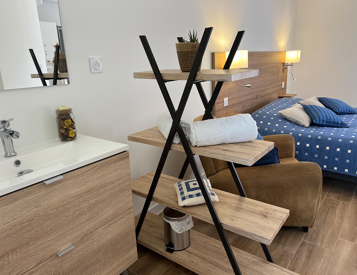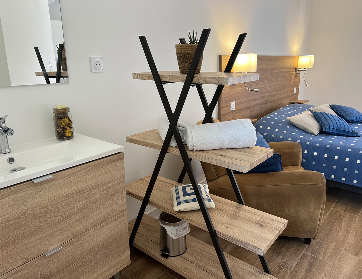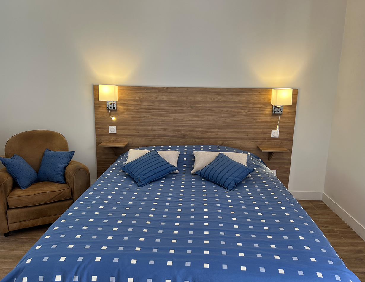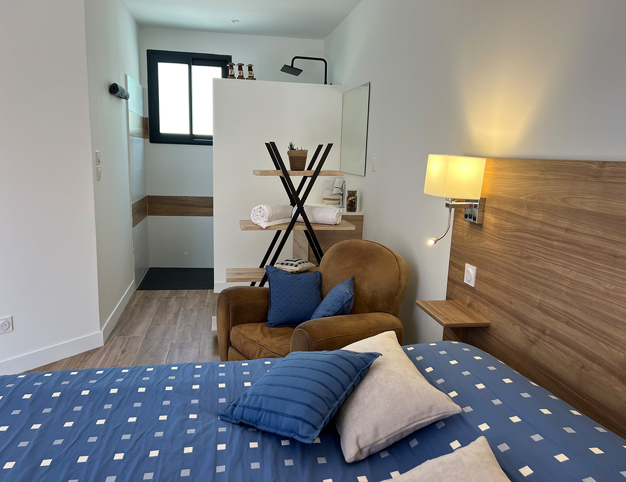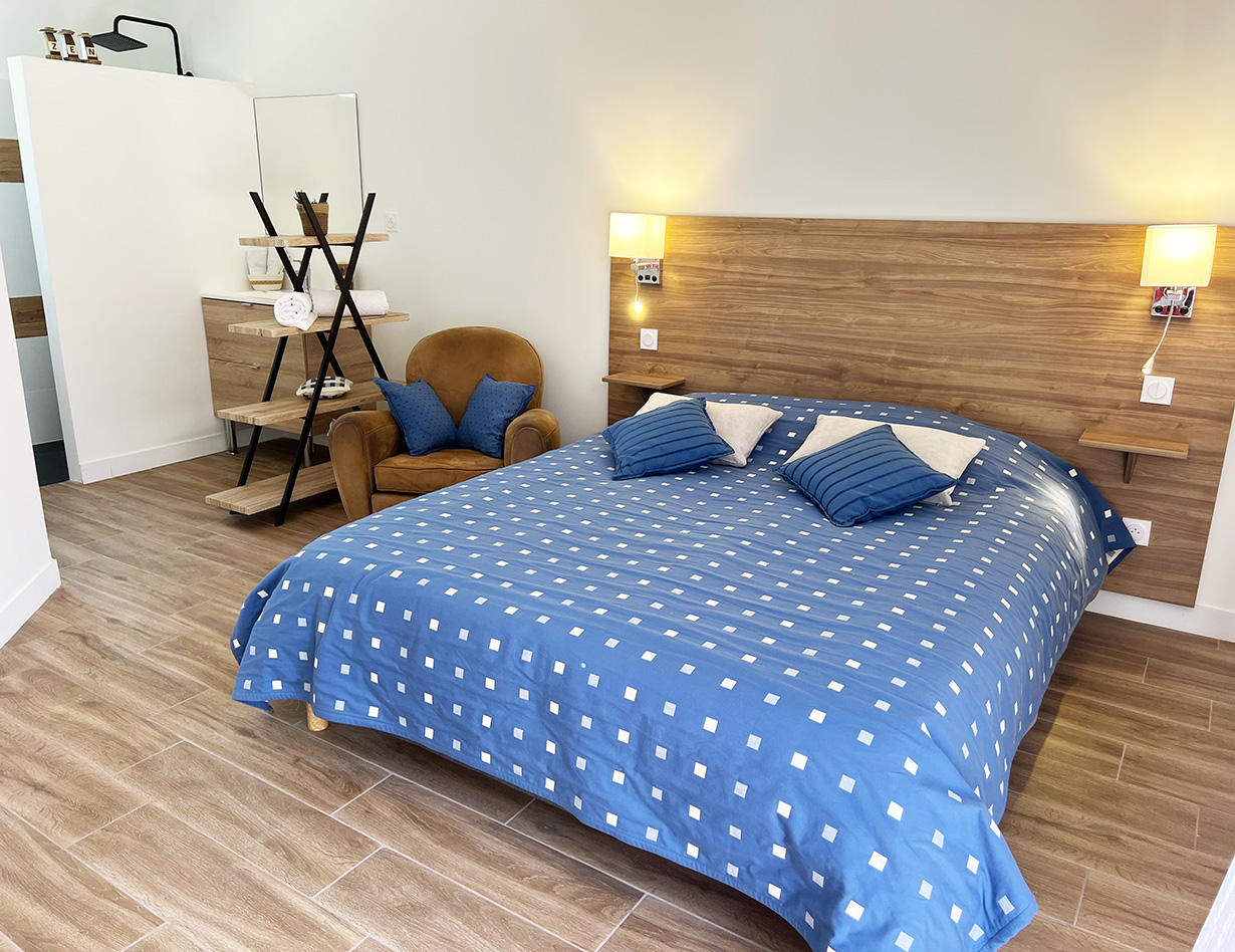 Schlafzimmer 3: EG – Großes Zimmer mit großem Doppelbett und ensuite Badezimmer. AC