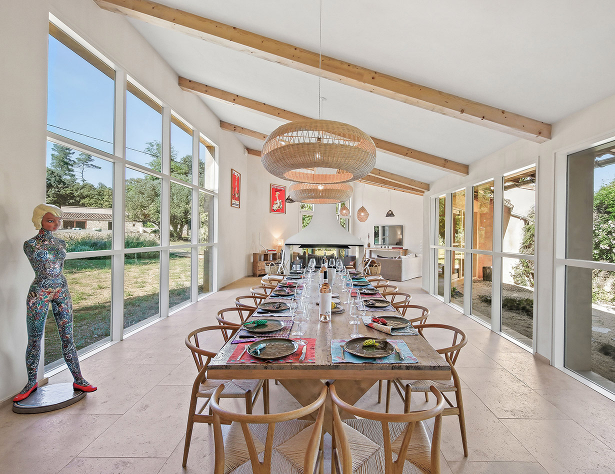Total fast 600 m2 Wohnfläche. Acht stilvolle Schlafzimmer mit eigenen Bädern bieten Raum für bis zu 19 Gäste und vereinen Komfort mit Privatsphäre. Das großzügige Herrenhaus, ergänzt durch zwei weitere Gebäude und ein charmantes Poolhaus, eröffnet vielfältige Möglichkeiten des Zusammenseins – und des Rückzugs. Weitläufige Sonnenterrassen, ein offener Kamin, zahlreiche Außenbereiche und eine voll ausgestattete Küche – ergänzt durch eine einladende Außenküche – schaffen den perfekten Rahmen für genussvolle Stunden.
