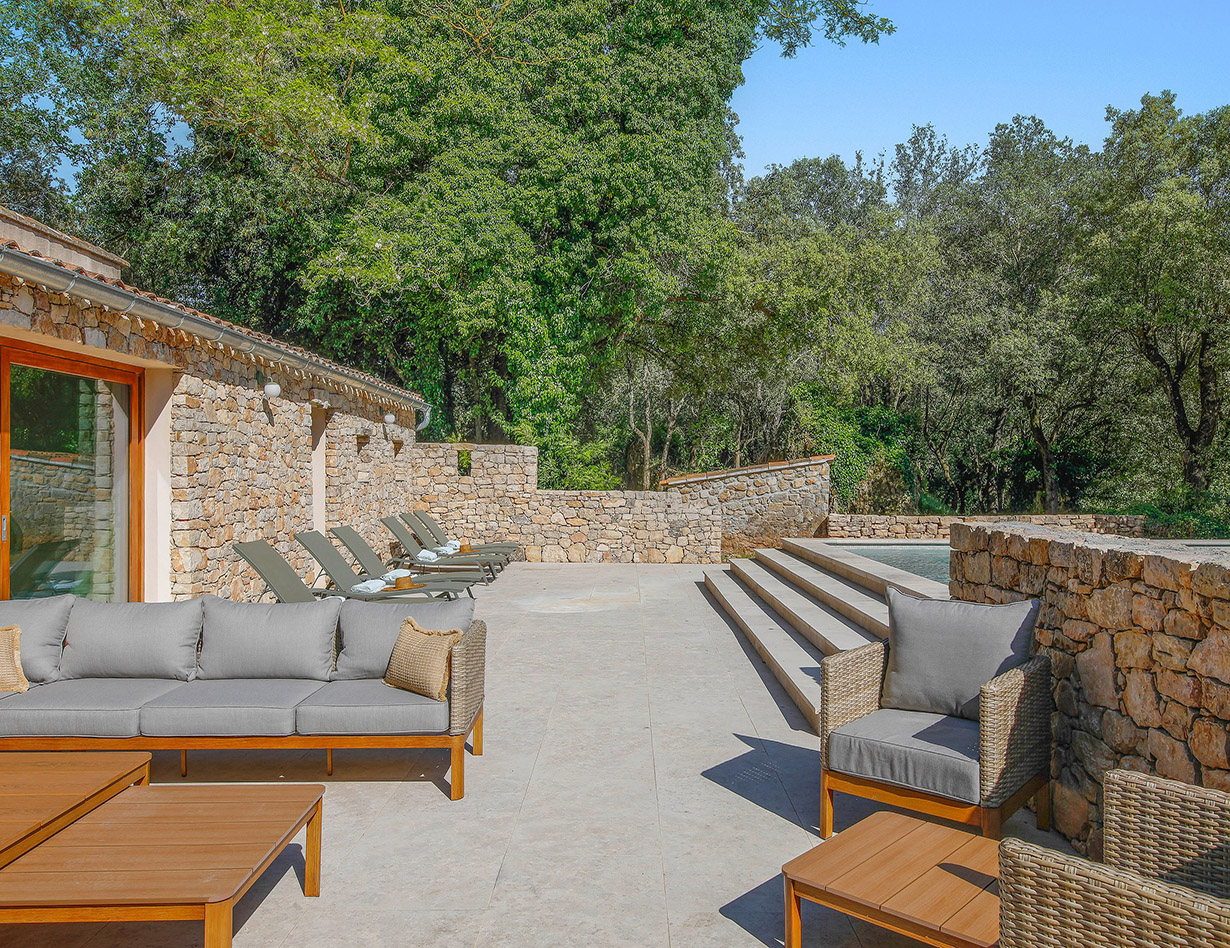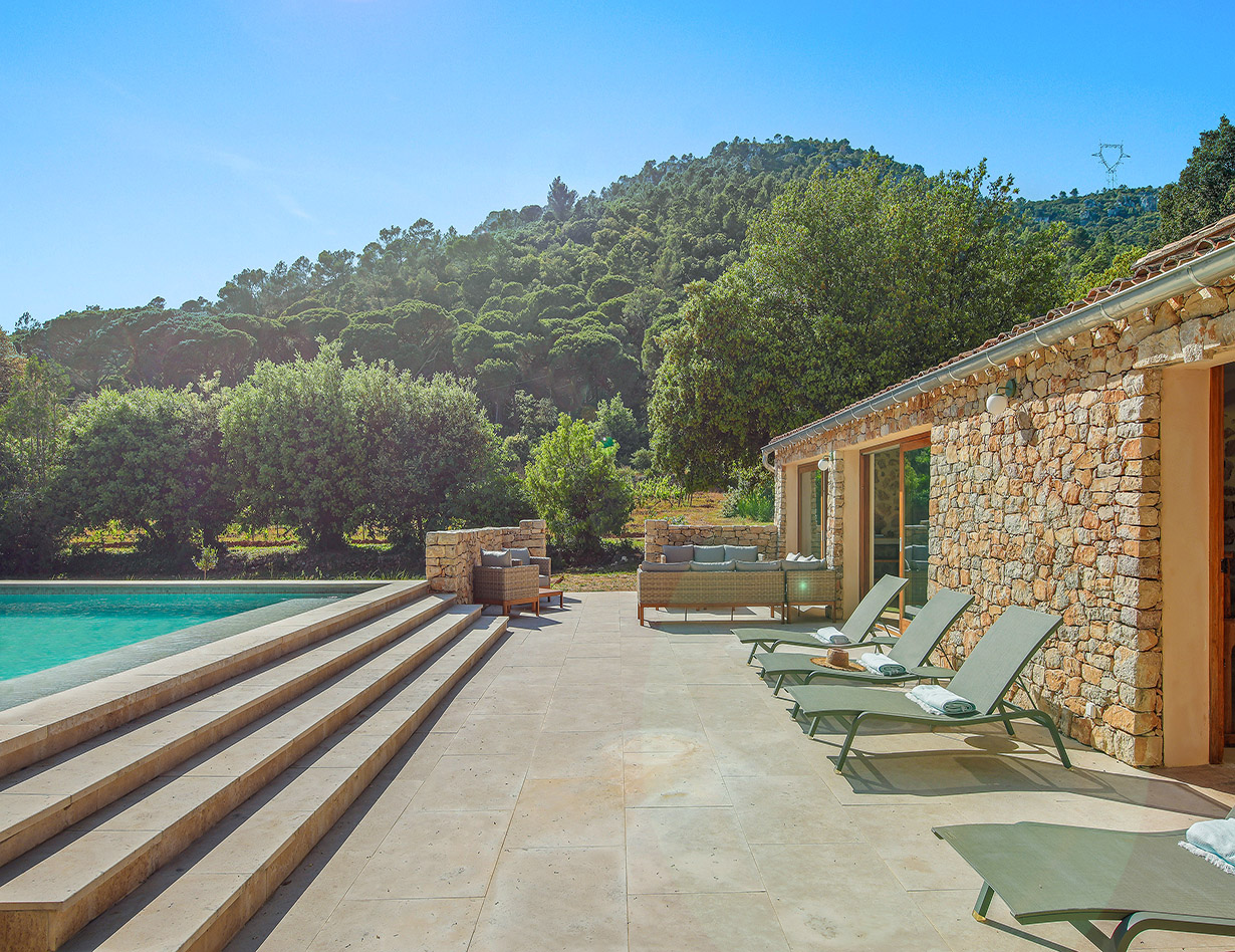 Der beheizbare Pool glitzert unter südlicher Sonne, während sich der Blick ungehindert über die umliegende Landschaft erstreckt. Ob bei einem gemeinsamen Dinner unter freiem Himmel oder ein BBQ, einem entspannten Nachmittag beim Boule-Spiel oder stillen Momenten inmitten der Natur – hier entsteht eine besondere Form von Luxus: Zeit, Raum und Atmosphäre.
