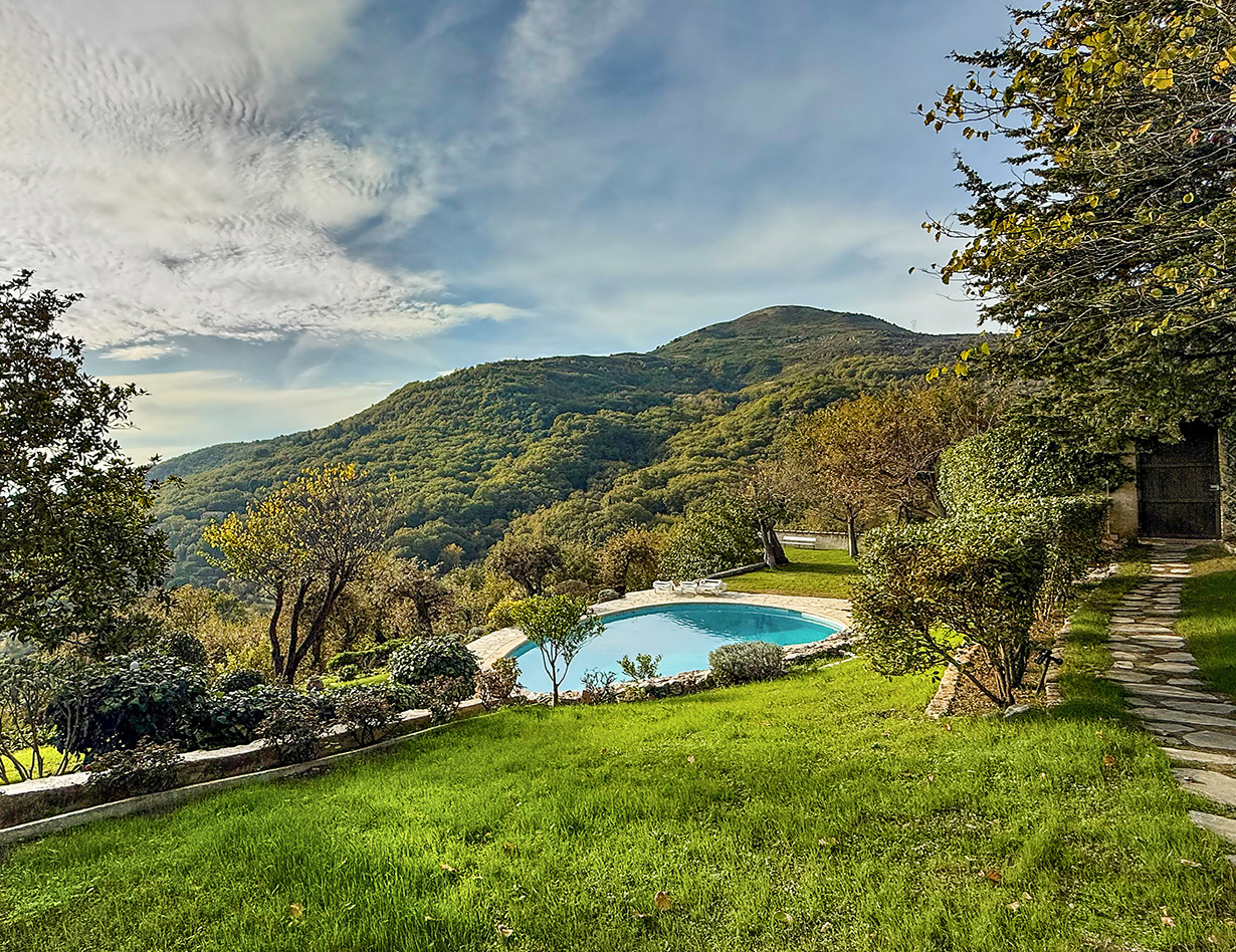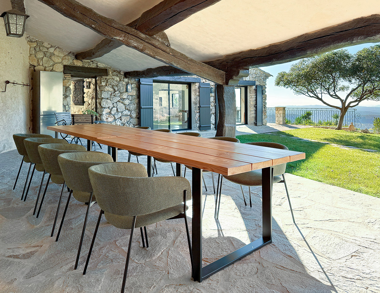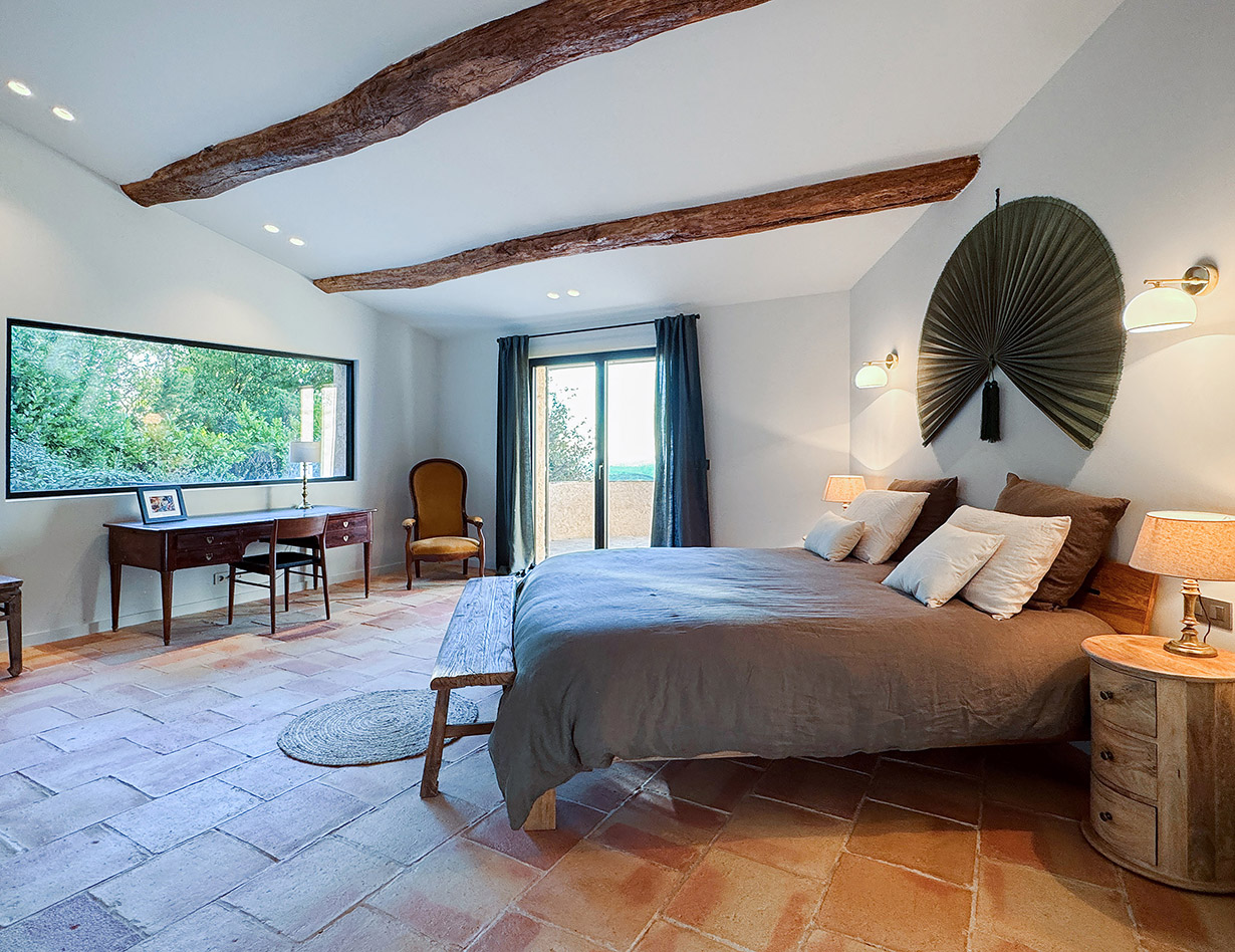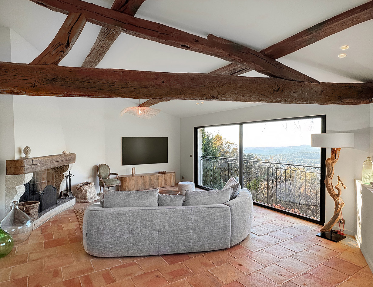Die edle Villa empfängt 10 bis 12 Gäste in großzügigen, harmonisch gestalteten Räumen, die sofort ein Gefühl von Leichtigkeit und Geborgenheit vermitteln. Weite Ausblicke öffnen sich über das grüne Tal bis hin zum Meer Richtung Antibes – ein Panorama, das zu jeder Tageszeit fasziniert und eine besondere Atmosphäre der Gelassenheit schafft.