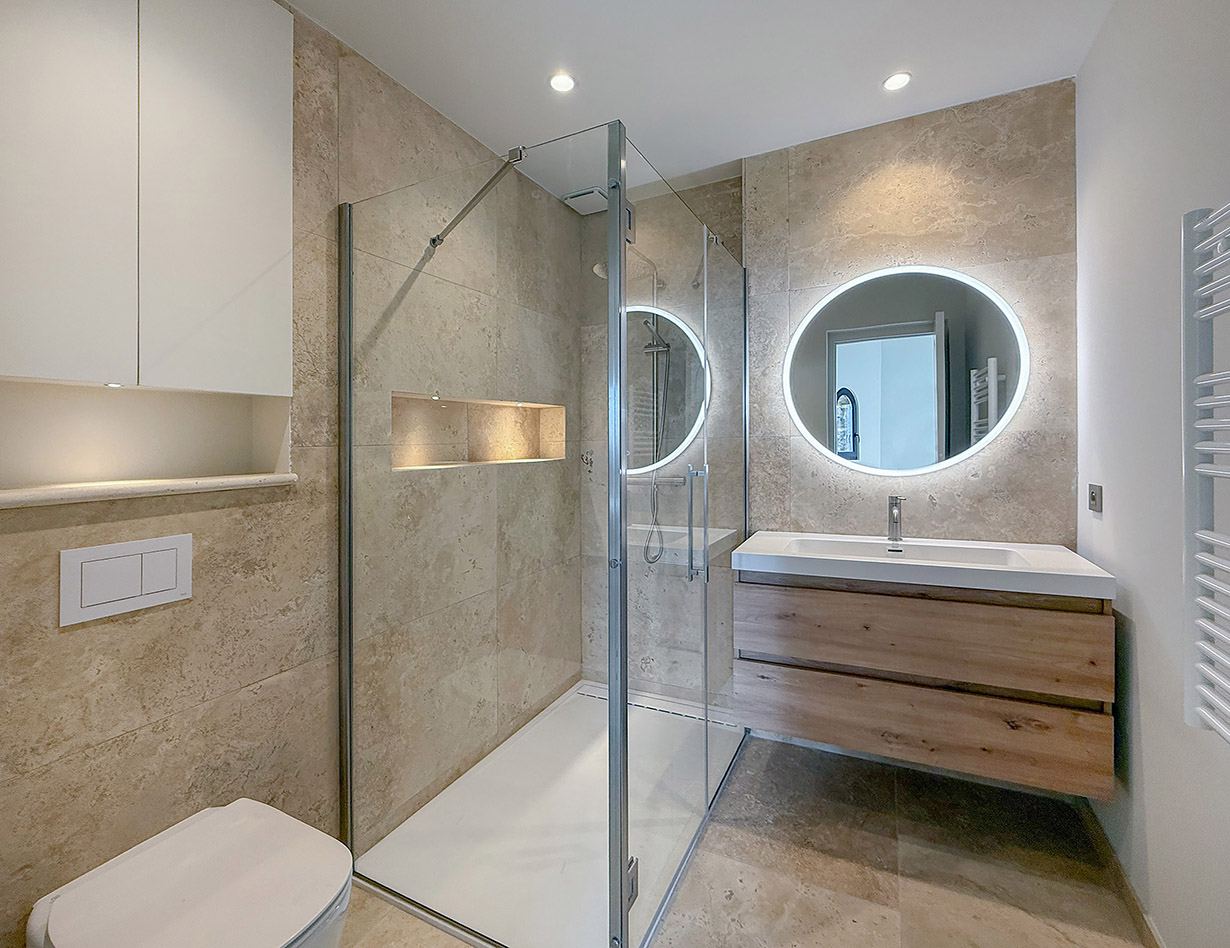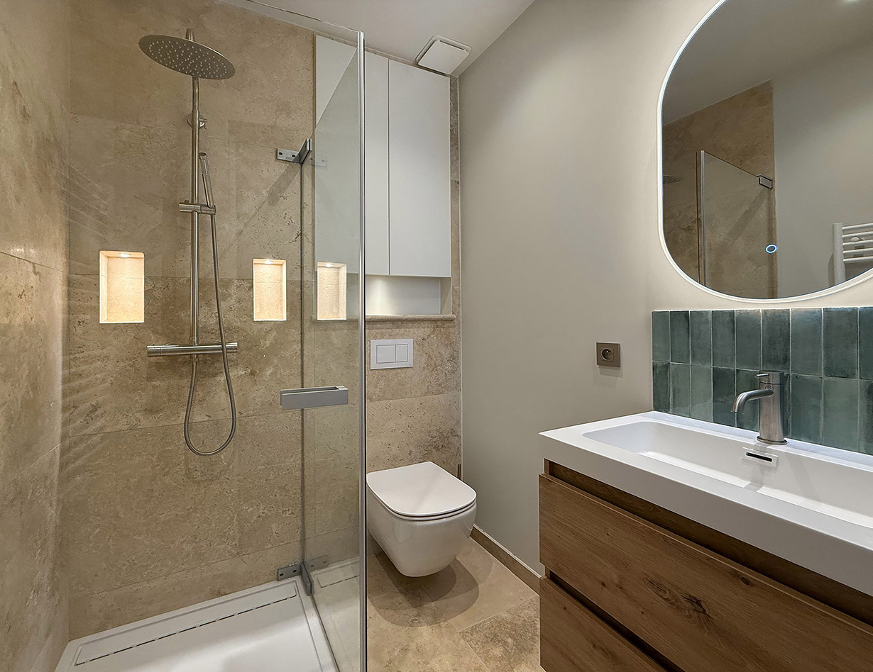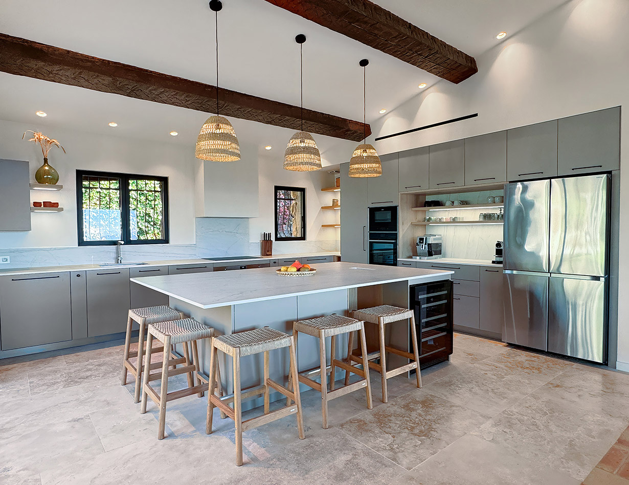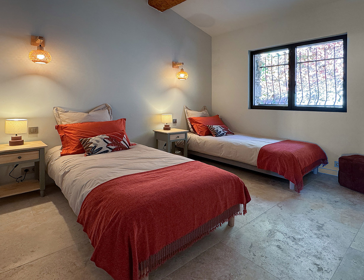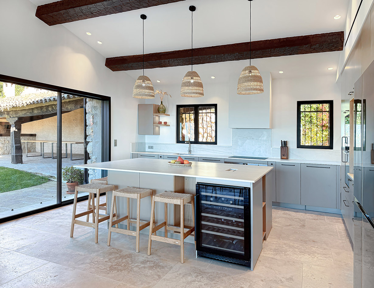 Die edle Villa empfängt 10 bis 12 Gäste in großzügigen, harmonisch gestalteten Räumen, die sofort ein Gefühl von Leichtigkeit und Geborgenheit vermitteln. Weite Ausblicke öffnen sich über das grüne Tal bis hin zum Meer Richtung Antibes – ein Panorama, das zu jeder Tageszeit fasziniert und eine besondere Atmosphäre der Gelassenheit schafft.
