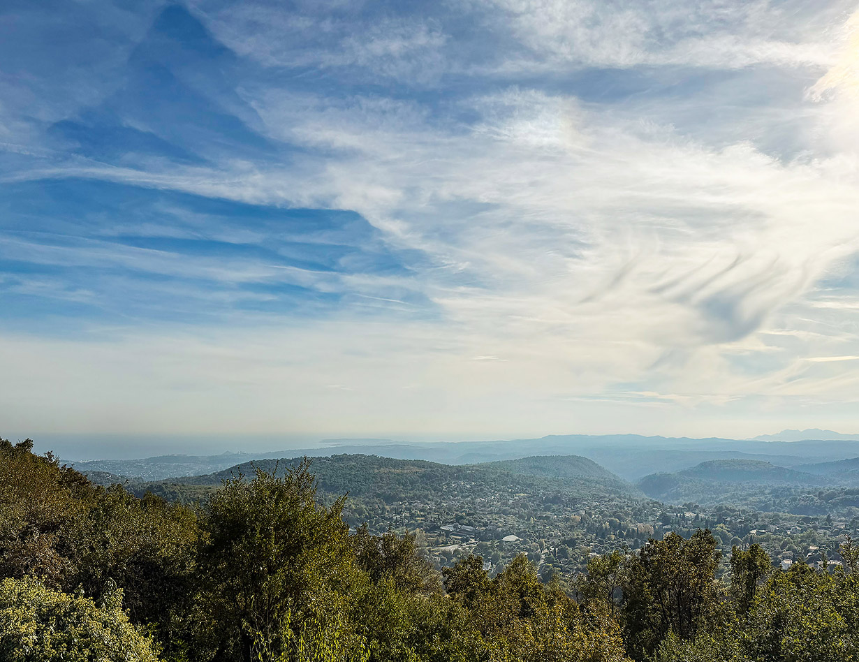 Sensationeller Blick über die Landschaft und das Meer, das Cap Antibes und die komplette Küste – einfach nur atemberaubend!
