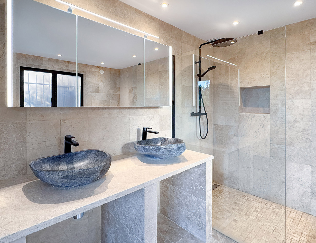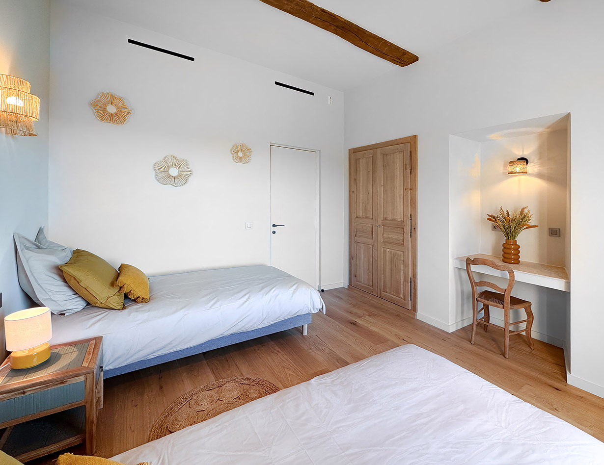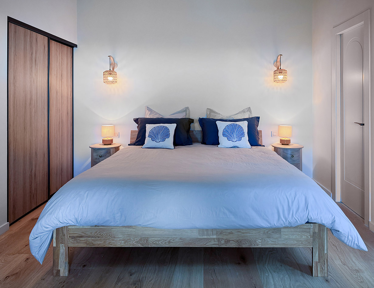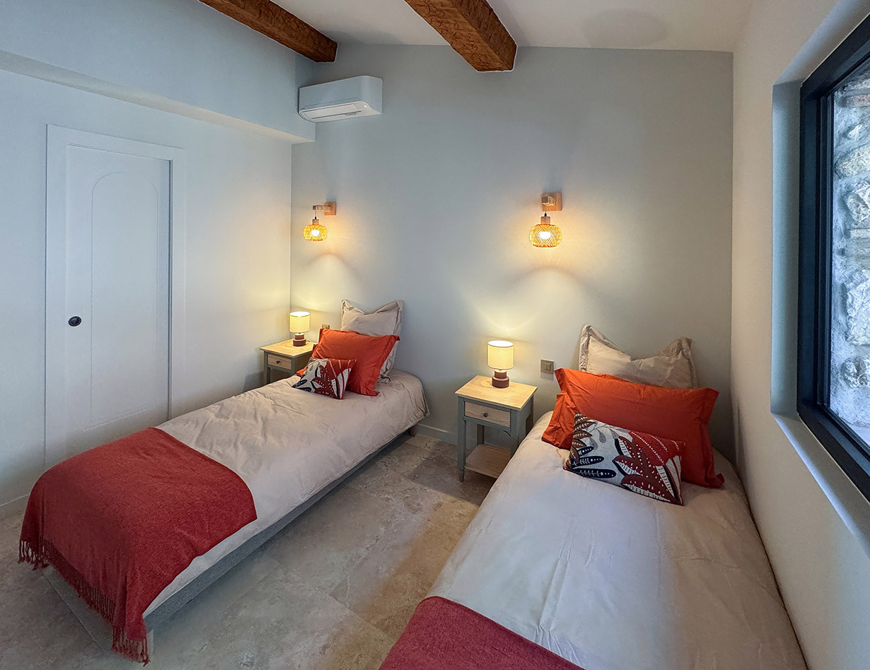 Im unteren Geschoss liegen drei weitere großzügige klimatisierte Doppelschlafzimmer, ebenfalls mit privaten Bädern, die Rückzug und Privatsphäre für alle Gäste gewährleisten.