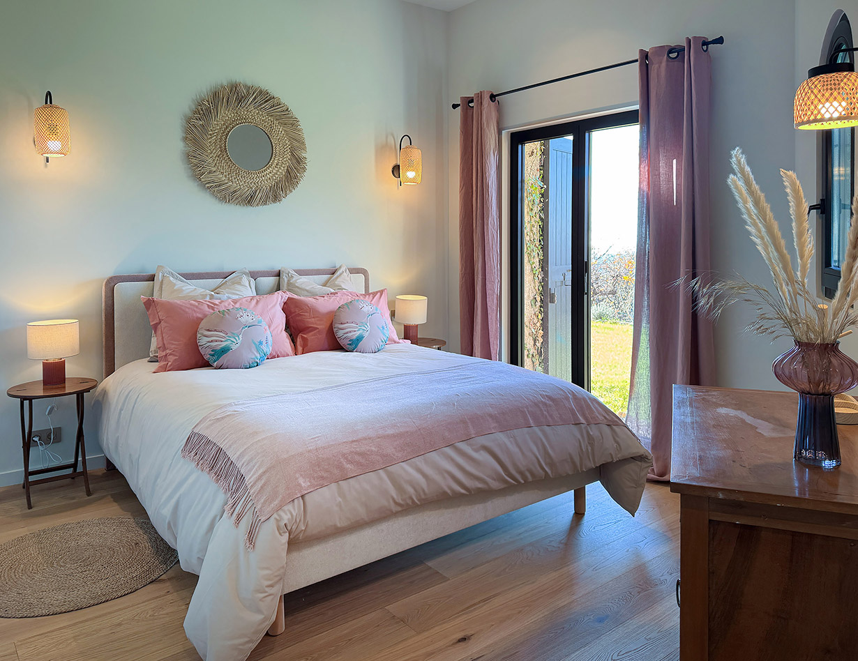 Gartenebene, großes Doppelbett 160 cm, ensuite Badezimmer, WC, Klimaanlage