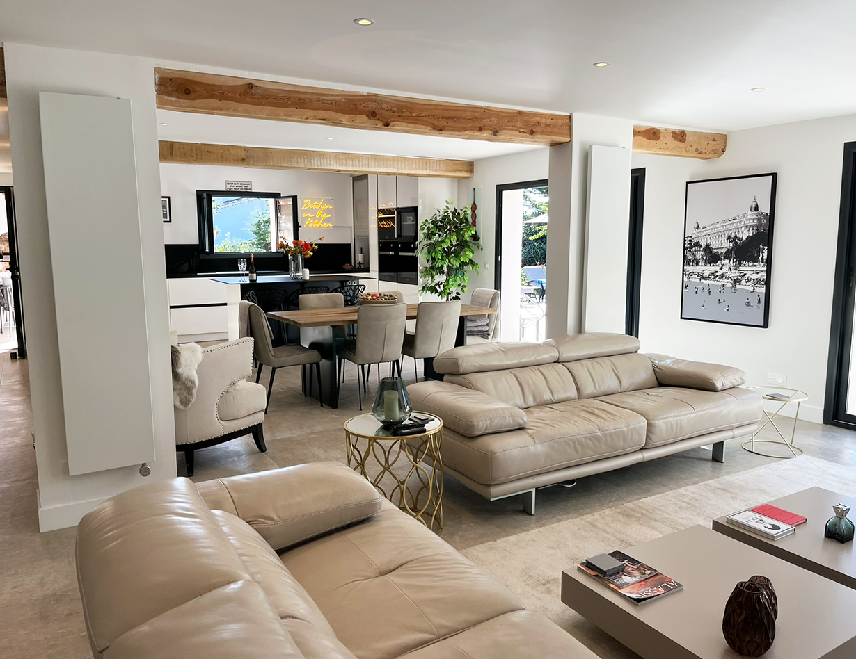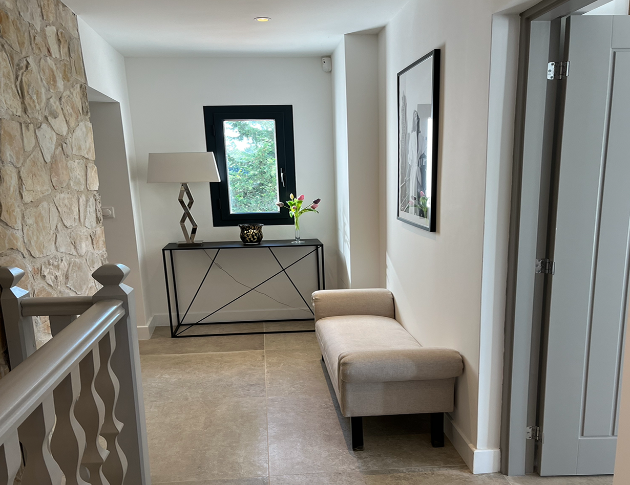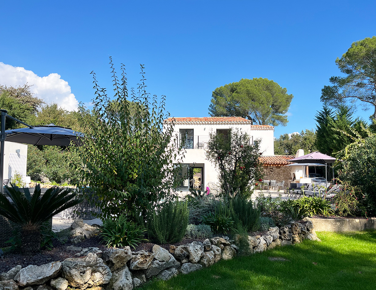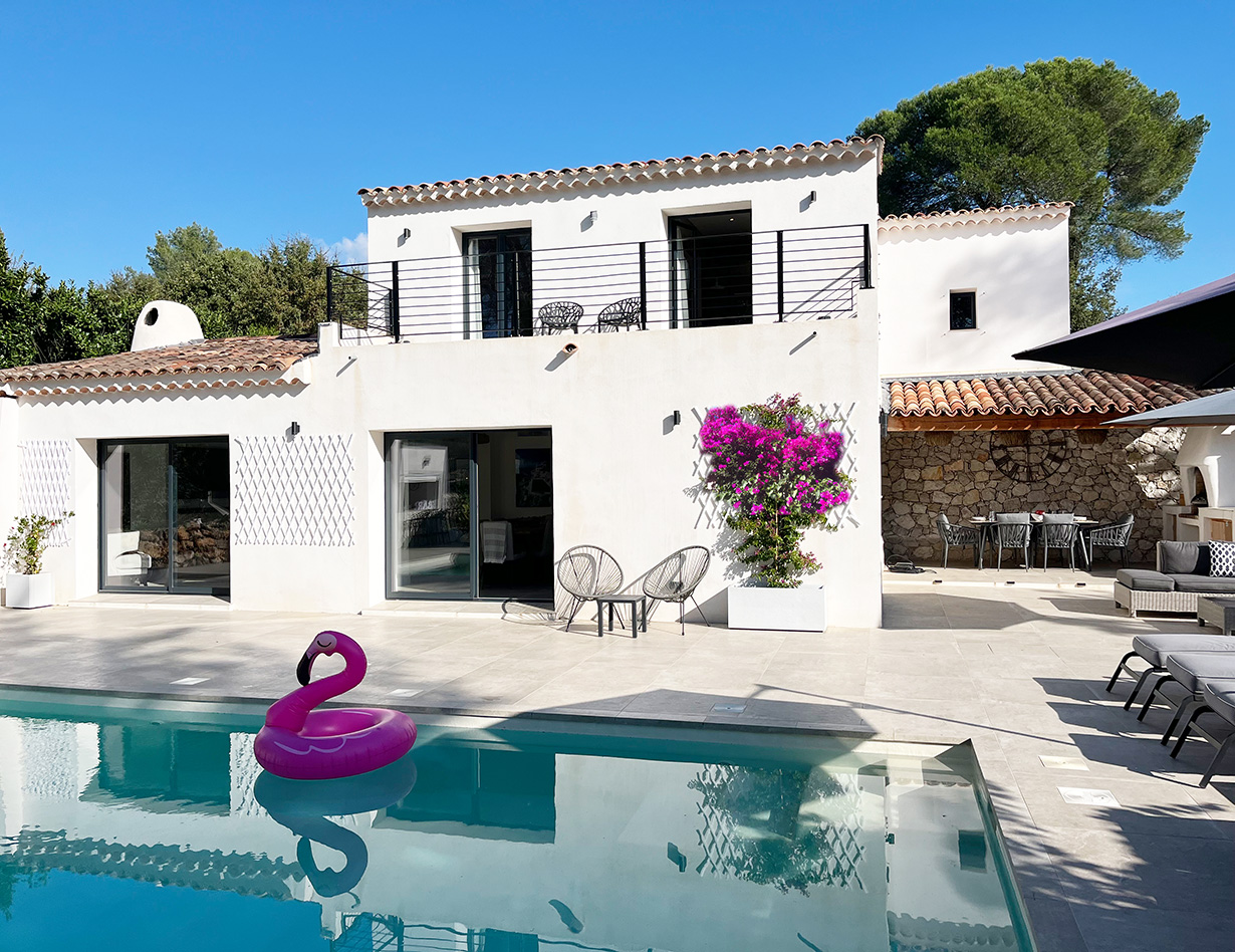 Welcome to this exquisite, newly renovated chic villa in Roquefort-Les-Pins – a true gem for an unforgettable holiday on the Côte d’Azur. Nestled in a tranquil residential area, only about 20 minutes from Nice Airport and 15 minutes from the stunning beaches, this light-filled villa combines stylish elegance with the highest comfort. Additionally, it is within walking distance to the shopping center with a good bakery, bar, and restaurants – all very convenient!