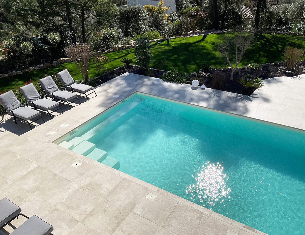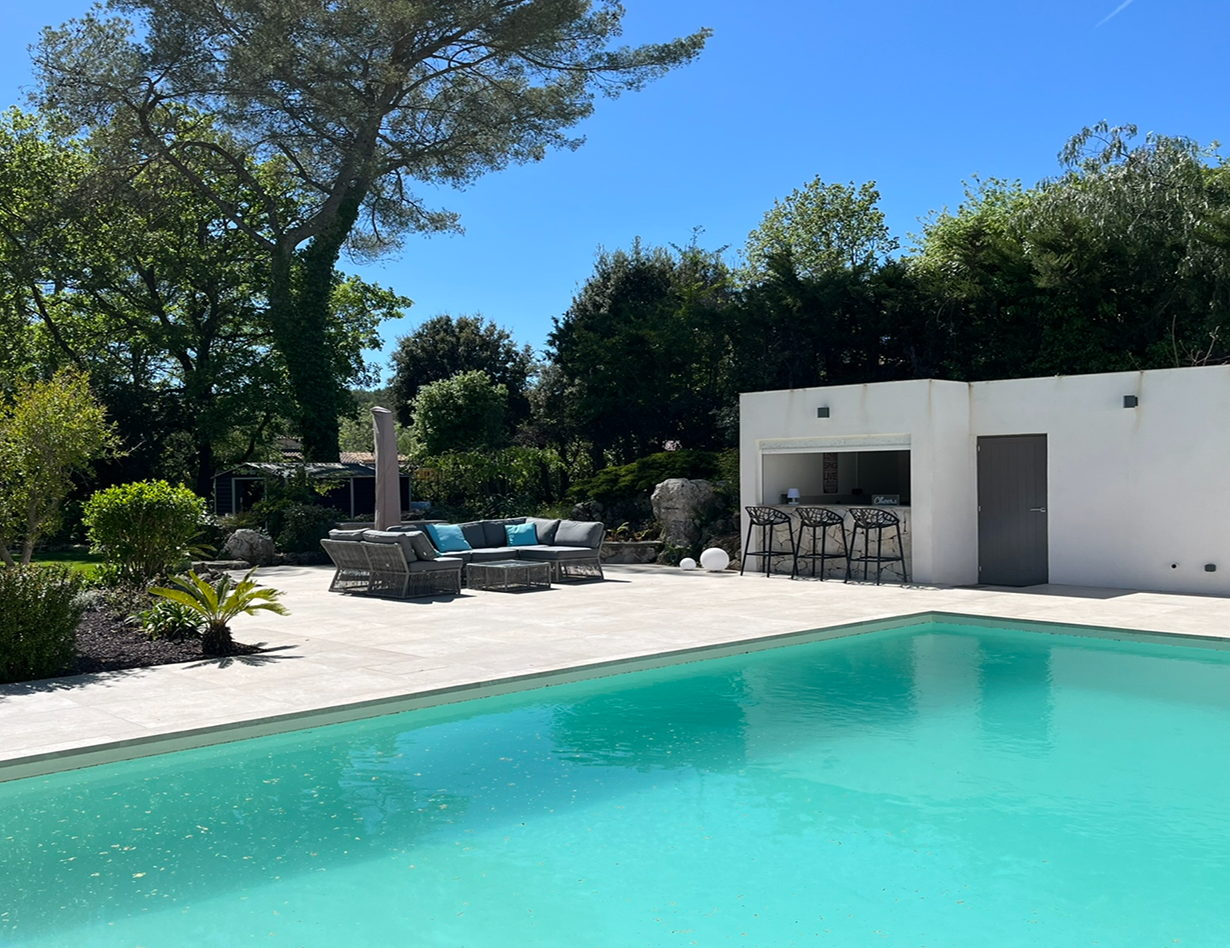 - Private pool approx. 11×5 m, with comfortable, stylish sun loungers and parasols. Cool pool house with shower and WC.
