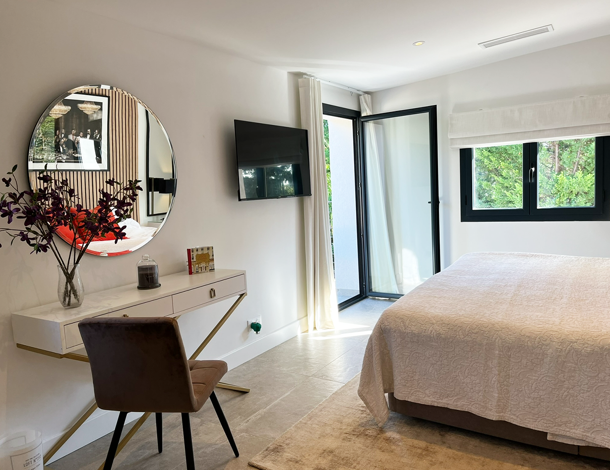 - Bedroom 2: 1st floor, large double room with pool view, ensuite bathroom/WC, dressing room.
