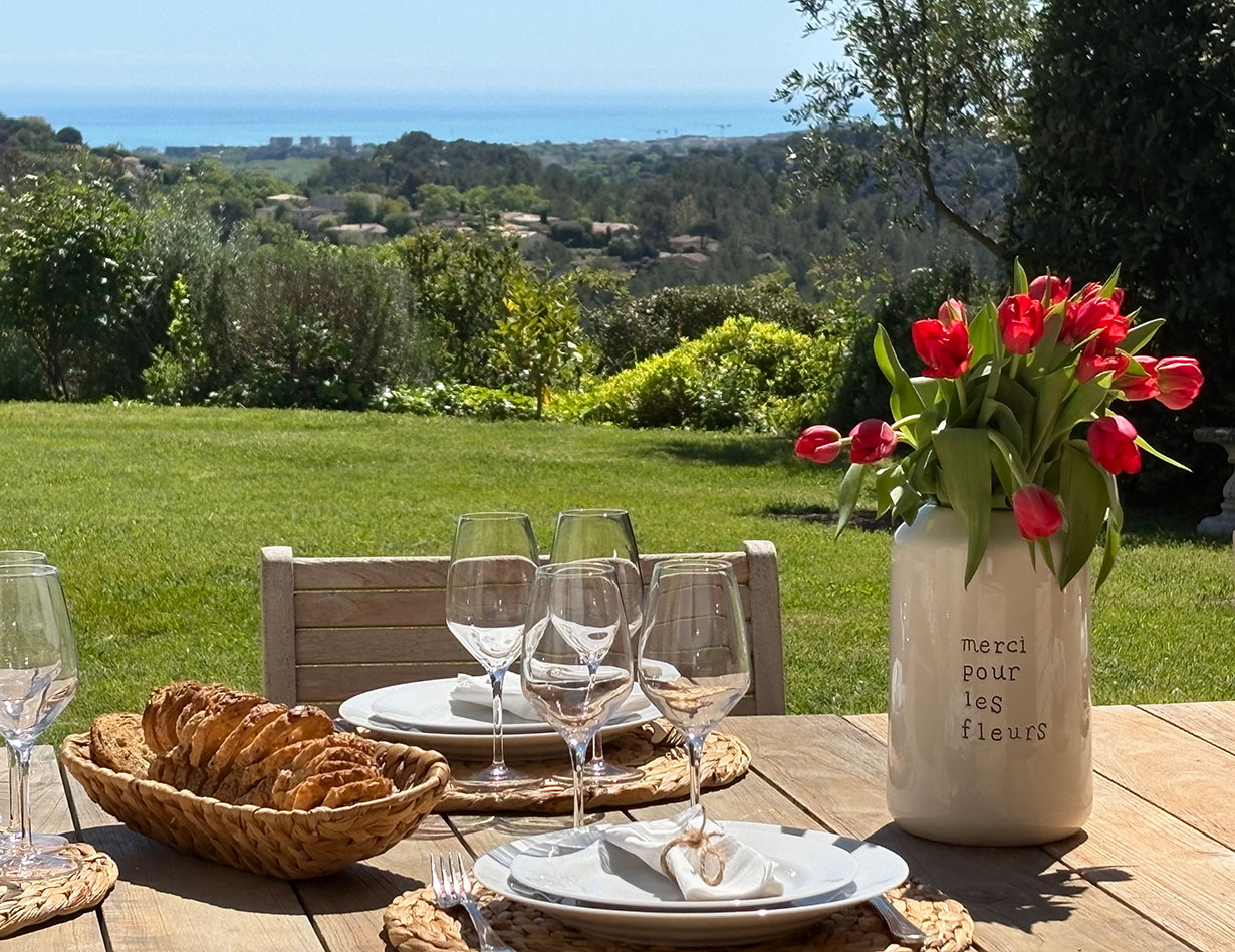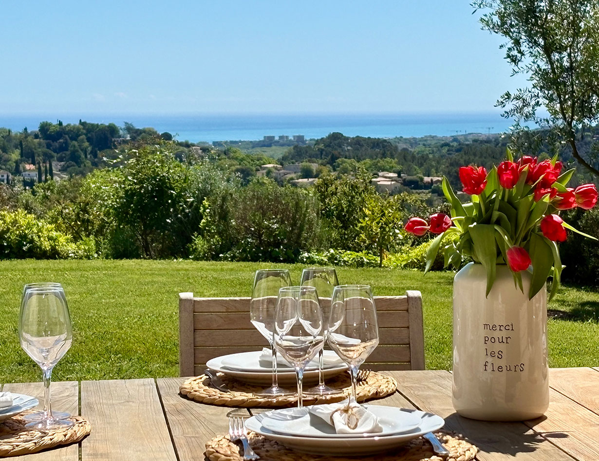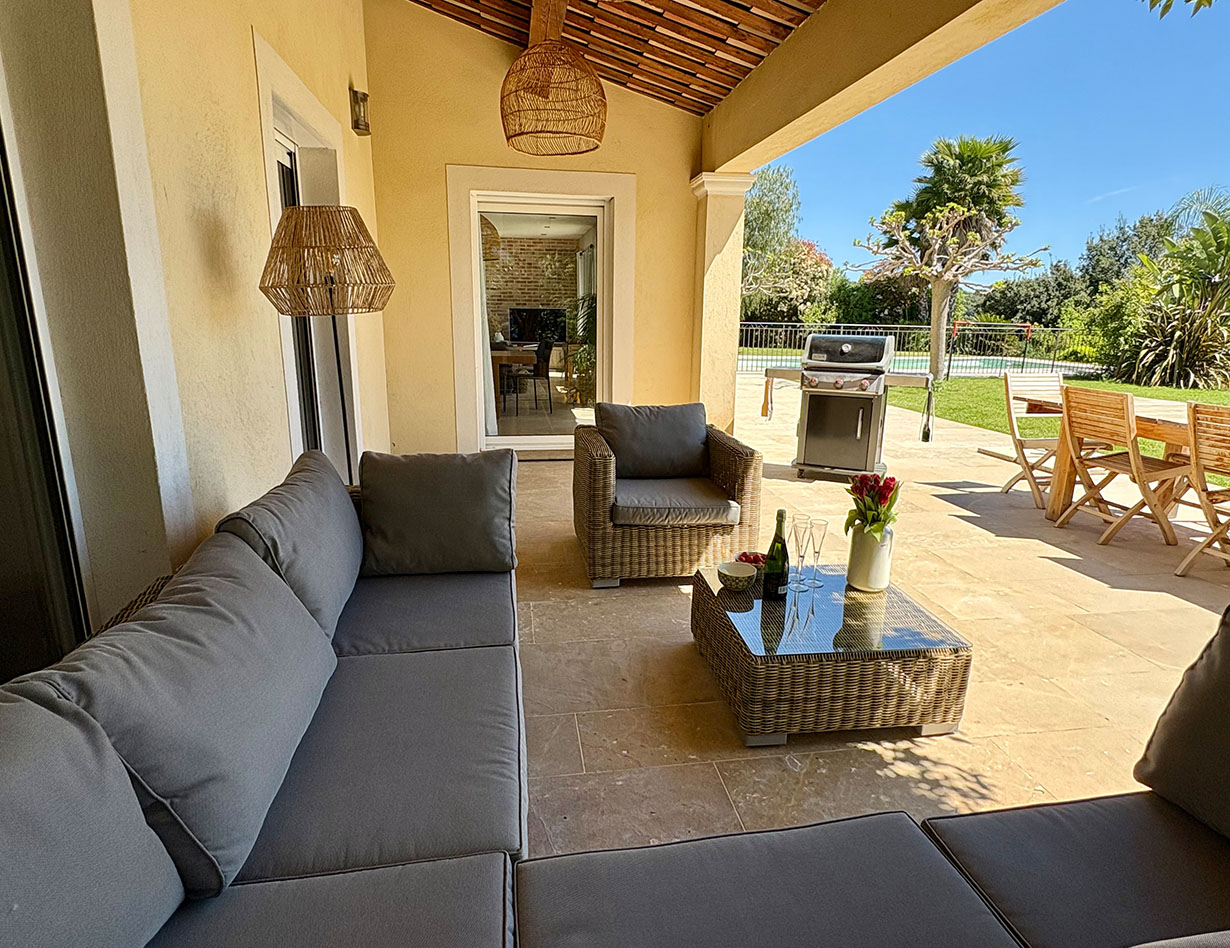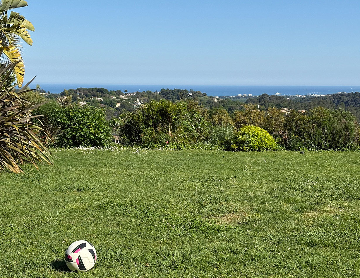Die Villa auf flachem Grundstück mit viel Platz zum Erholen und Spielen verfügt über vier geräumige, stilvoll eingerichtete Schlafzimmer, drei Bäder und vier separate WCs. Vom großen Wohn- und Essbereich mit einer bestens ausgestatteten Küche gelangt man auf die teilüberdachte Terrasse im herrlichen Garten. Hier laden komfortable, wertige Loungemöbel sowie ein großer Esstisch zum Verweilen und Entspannen ein – ein BBQ ist ebenfalls vorhanden. Genießen Sie Ihre Mahlzeiten bei einem traumhaften Blick auf das Meer! Apropos Meer: Biot liegt nur vier Kilometer von der Küste entfernt, mit dem Auto sind Sie schnell am Strand oder im quirligen Küstenort Antibes mit seinem Jachthafen, der wunderschönen Altstadt, dem tollen Wochenmarkt u.v.m. Shoppingparadis auch für alle:).