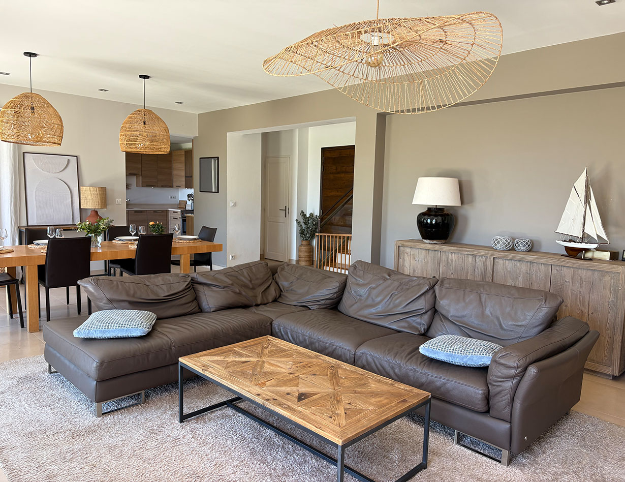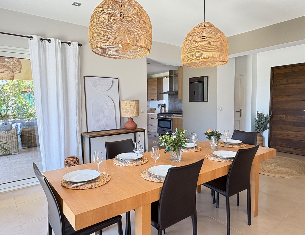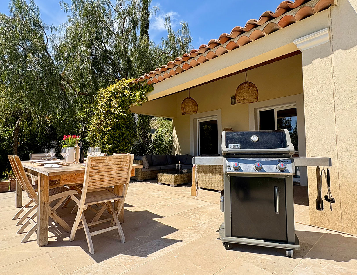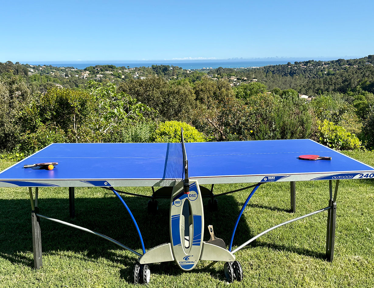 Die Villa auf flachem Grundstück mit viel Platz zum Erholen und Spielen verfügt über vier geräumige, stilvoll eingerichtete Schlafzimmer, drei Bäder und vier separate WCs. Vom großen Wohn- und Essbereich mit einer bestens ausgestatteten Küche gelangt man auf die teilüberdachte Terrasse im herrlichen Garten. Hier laden komfortable, wertige Loungemöbel sowie ein großer Esstisch zum Verweilen und Entspannen ein – ein BBQ ist ebenfalls vorhanden. Genießen Sie Ihre Mahlzeiten bei einem traumhaften Blick auf das Meer! Apropos Meer: Biot liegt nur vier Kilometer von der Küste entfernt, mit dem Auto sind Sie schnell am Strand oder im quirligen Küstenort Antibes mit seinem Jachthafen, der wunderschönen Altstadt, dem tollen Wochenmarkt u.v.m. Shoppingparadis auch für alle:).