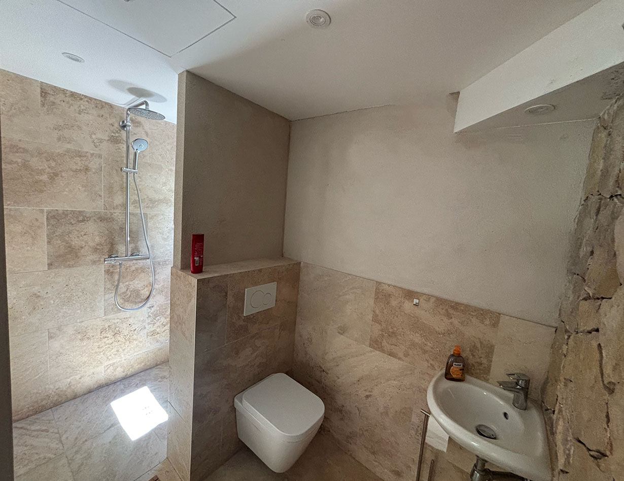 3-4/5, 3 im Haus plus ein schickes neues Bad am Pool im coolen Poolhouse. In den Schlafzimmern OG zudem Waschbecken